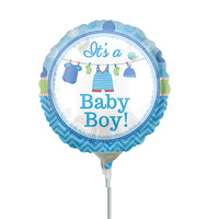 10cm Baby Boy Shower with Love Foil Balloon #4031931AF - Each (Inflated, supplied air-filled on stick)