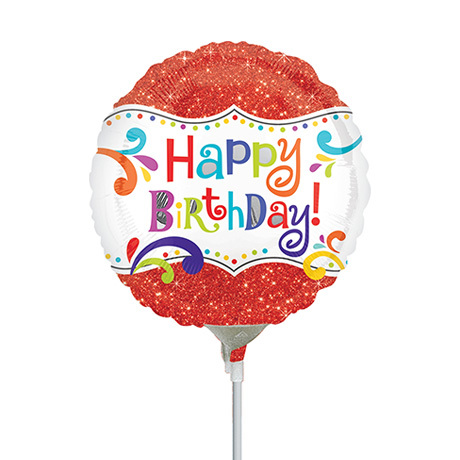 10cm Birthday HBD Sparkle Foil Balloon #4030880AF - Each (Inflated, supplied air-filled on stick)