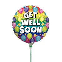 10cm Get Well Rainbow Foil Balloon #2511418AF - Each (Inflated, supplied air-filled on stick)