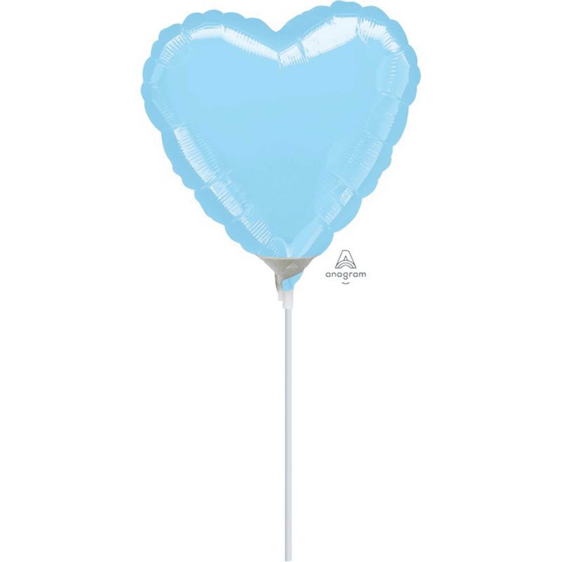 10cm Heart Pastel Blue Plain Foil Balloon #4016358AF - Each (Inflated, supplied air-filled on stick)