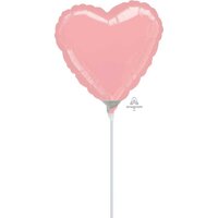 10cm Heart Pastel Pink Plain Foil Balloon #4016466AF - Each (Inflated, supplied air-filled on stick)