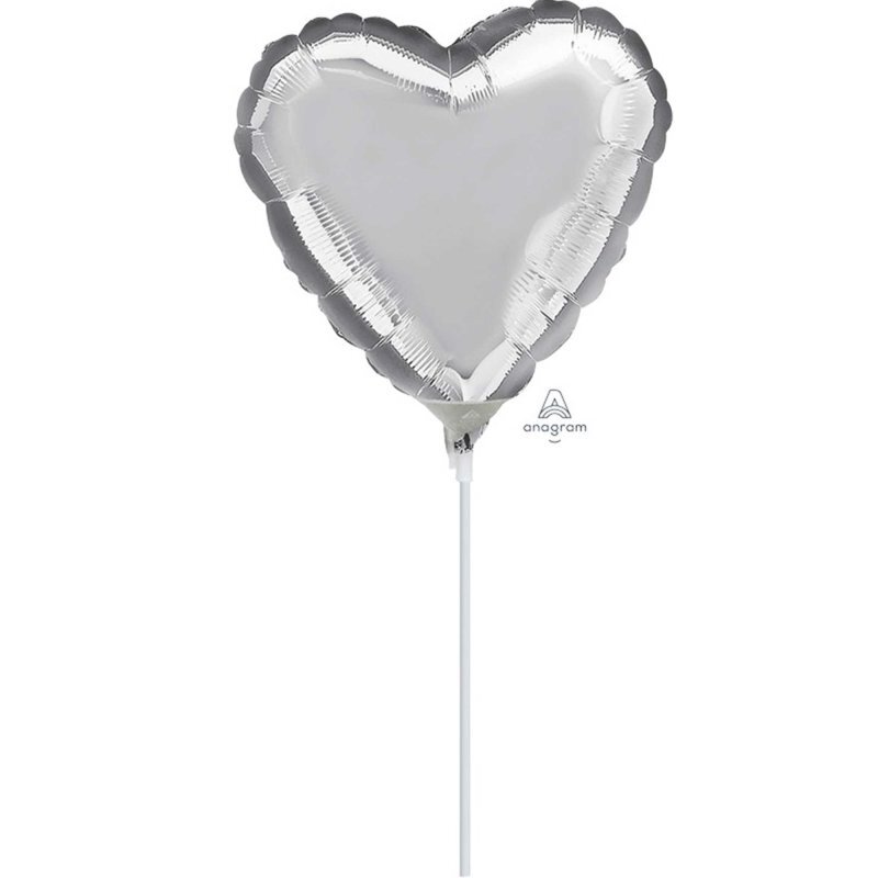 10cm Heart Silver Plain Foil Balloon #4016305AF - Each (Inflated, supplied air-filled on stick)