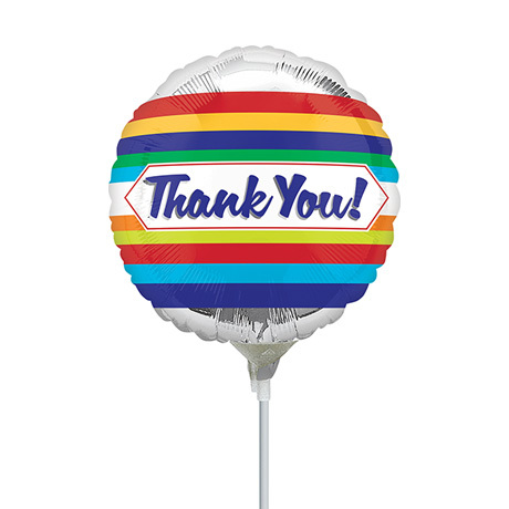 10cm Thank You Stripes Foil Balloon #4035588AF - Each (Inflated, supplied air-filled on stick)