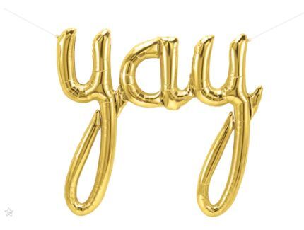 112cm Script Yay Gold Foil Balloon - Air Fill ONLY #59772 - Each (Pkgd.) TEMPORARILY UNAVAILABLE