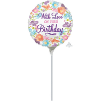22cm Birthday With Love Foil Balloon #4035586AF - Each (Inflated, supplied air-filled on stick)
