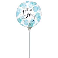 22cm Baby Boy Blue Watercolour Foil Balloon #4045695AF - Each (Inflated, supplied air-filled on stick) TEMPORARILY UNAVAILABLE
