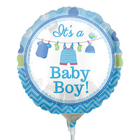 22cm Baby Boy Shower with Love Foil Balloon #4031932AF - Each (Inflated, supplied air-filled on stick)