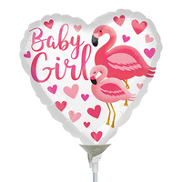 22cm Baby Girl Flamingo Foil Balloon #4039648AF - Each (Inflated, supplied air-filled on stick)