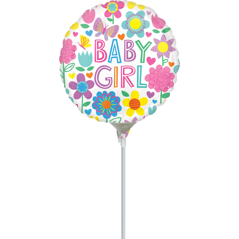 22cm Baby Girl Floral Butterfly Foil Balloon #4041655AF - Each (Inflated, supplied air-filled on stick)