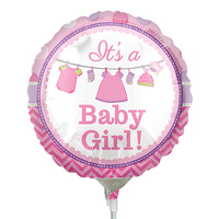 22cm Baby Girl Shower with Love Foil Balloon #4031933AF - Each (Inflated, supplied air-filled on stick)