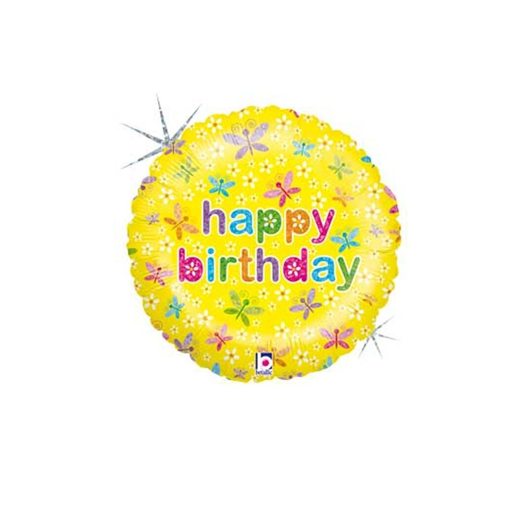 22cm Birthday Spring Butterflies Foil Balloon #2582433AF - Each (Inflated, supplied air-filled on stick)