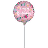 22cm Happy Birthday Satin Peony Foil Balloon #4045917AF - Each (Inflated, supplied air-filled on stick)