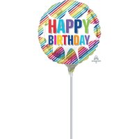 22cm Happy Birthday Striped Burst Foil Balloon #4041784AF - Each (Inflated, supplied air-filled on stick)