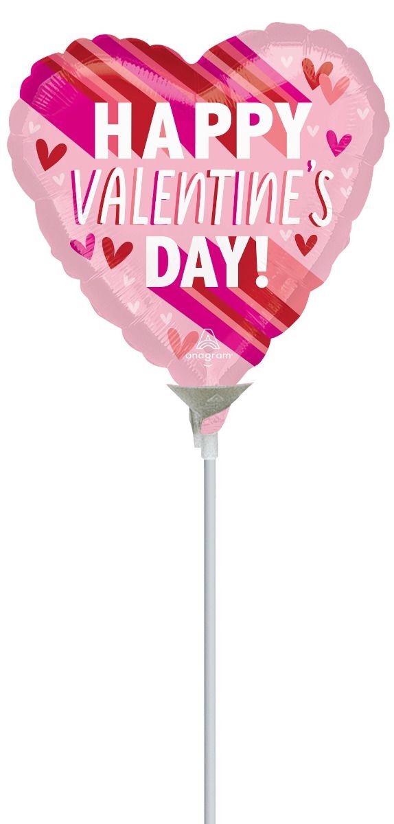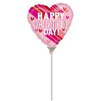 22cm Happy Valentine's Day Stripes on Stripes Foil Balloon #4046381AF - Each (Inflated, supplied air-filled on stick)