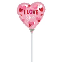 22cm I Love You Ombre Flowers Heart Foil Balloon #4042284AF - Each (Inflated, supplied air-filled on stick)