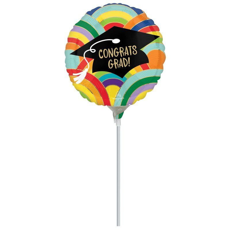 22cm Round Congrats Grad Rainbows All Around Foil Balloon #4042784AF - Each (Inflated, supplied air-filled on stick)