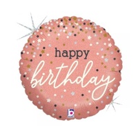 22cm Round Holo Rose Gold Confetti Birthday Foil Balloon #2532985AF - Each (Inflated, supplied air-filled on stick)