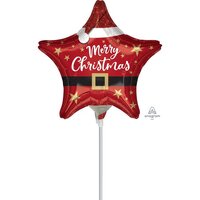 22cm Shape Santa Christmas Star Foil Balloon #4042075AF - Each (Inflated, supplied air-filled on stick)
