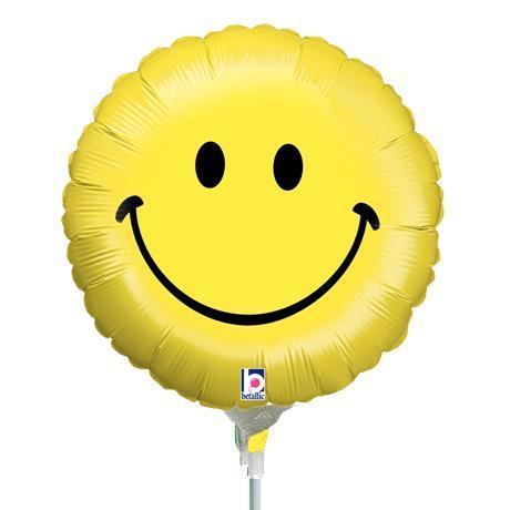 22cm Smiley Face Foil Balloon #2512595AF - Each (Inflated, supplied air-filled on stick) TEMPORARILY UNAVAILABLE