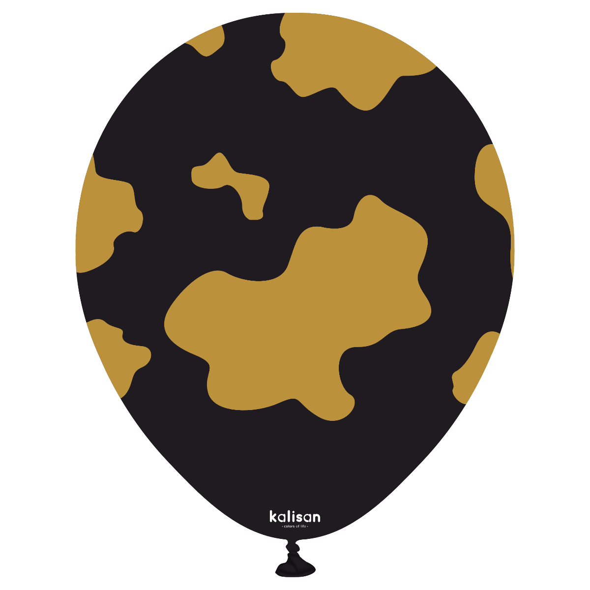 30cm Round Black Country Cow with Gold Print Kalisan Latex Balloons #21259553 - Pack of 25