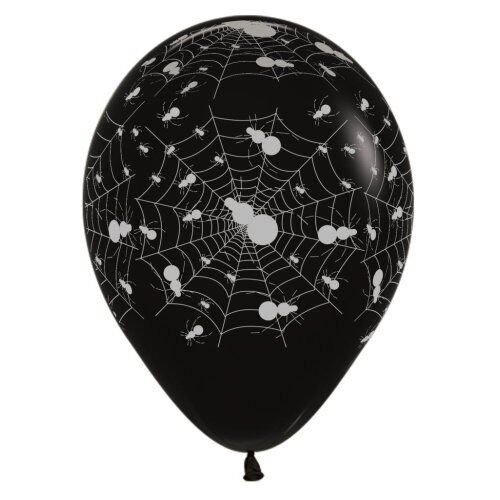 30cm Round Black Spiders Silver Ink Sempertex Latex #30221208 - Pack of 50