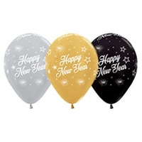 30cm Round Happy New Year Stars Assorted Satin/ Metallic Sempertex Latex #3022121425 - Pack of 25