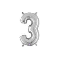 36cm Number 3 Silver Foil Balloon - Air Fill ONLY #2534843SP - Each (Pkgd.)