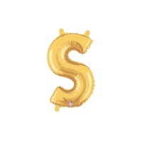 36cm Letter S Gold Foil Balloon - Air Fill ONLY #2534919SGP - Each (Pkgd.)