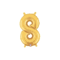 36cm Number 8 Gold Foil Balloon - Air Fill ONLY #2534848GP - Each (Pkgd.)