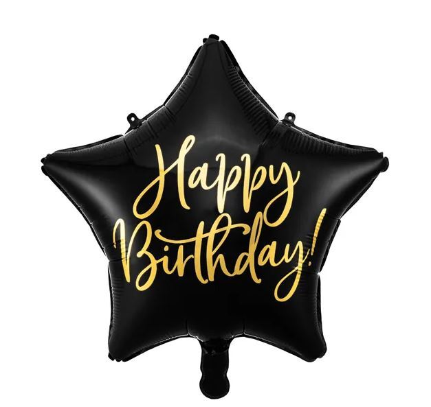 40cm Foil Balloon Glossy Star Cursive Happy Birthday Black #252693010 - Each (Pkgd.)