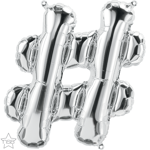41cm Symbol Hashtag # Silver Foil Balloon - Air Fill ONLY #59766 - Each (Pkgd.)