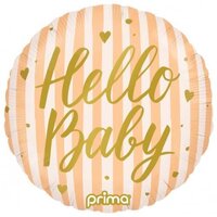 45cm Round Hello Baby Peach Stripes Foil Balloon #30P620304 - Each (Pkgd.)