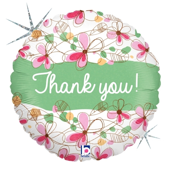45cm Glittering Floral Thank You Round Holographic Foil Balloon #2536170 - Each (Pkgd.) TEMPORARILY UNAVAILABLE
