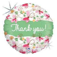 45cm Glittering Floral Thank You Round Holographic Foil Balloon #2536170 - Each (Pkgd.)