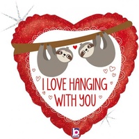 45cm Love Hanging Sloth Holographic Heart Foil Balloon #30G36927GHP - Each (Pkgd.)