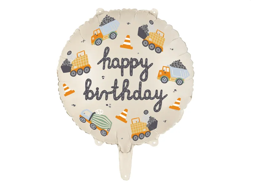 45cm Round Balloon Construction Vehicles Foil Balloon #PD26213 - Each (Pkgd.)