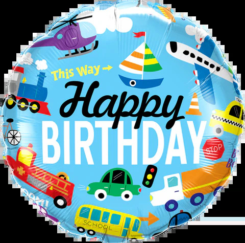 45cm Round Birthday Transportation #26980 - Each (Pkgd.)