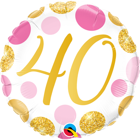45cm Round Foil 40 Pink & Gold Dots #88184 - Each (Pkgd.)