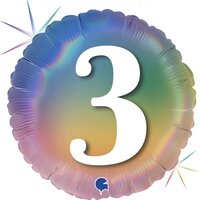 45cm Round Foil Age 3 Pastel Rainbow #30G78043RH - Each (Pkgd.)