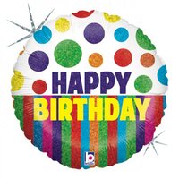 45cm Round Foil Happy Dots Birthday Stripes #30G86822H- Each (Pkgd.)