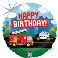 45cm Round Foil Holographic Emergency Vehicle Birthday #30G36702H - Each (Pkgd.)