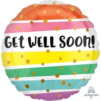 45cm Round Get Well Soon Bold Stripes Foil Balloon #4041683 - Each (Pkgd.)