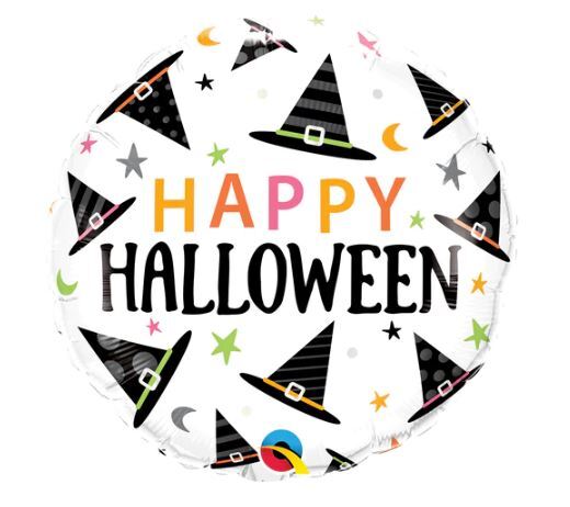 45cm Round Halloween Witches Hat Pattern Foil Balloon #23310 - Each (Pkgd.)