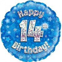 45cm Round Happy 14th Birthday Blue Holographic Foil Balloon #30210504 - Each (Pkgd.)