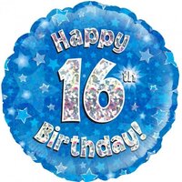 45cm Round Happy 16th Birthday Blue Holographic Foil Balloon #30210506 - Each (Pkgd.)