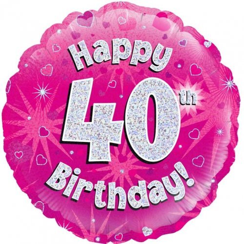 45cm Round Happy 40th Birthday Pink Holographic Foil Balloon #30210481 - Each (Pkgd.)
