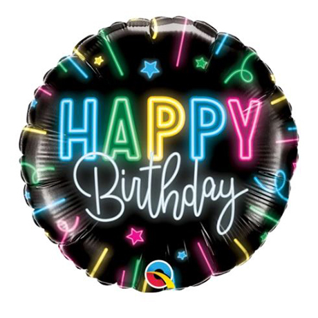 45cm Round Happy Birthday Neon Glow Foil Balloon #12276 - Each (Pkgd.)
