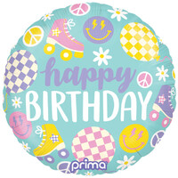 45cm Round Happy Birthday Retro Skates Foil Balloon #30P620106 - Each (Pkgd.)