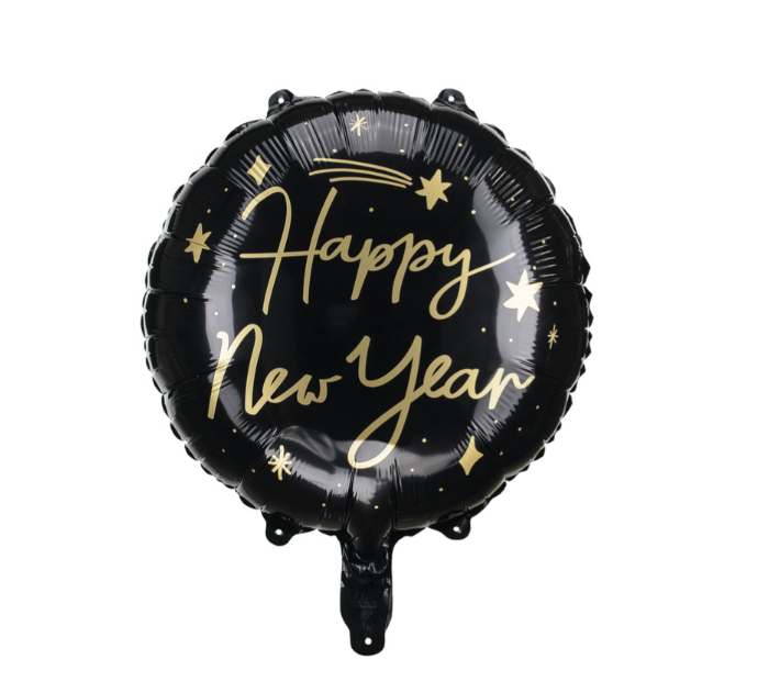 45cm Round Happy New Year Black Foil Balloon #25PD26162 - Each (Pkgd.)