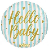 45cm Round Hello Baby Blue Stripes Foil Balloon #30P620250 - Each (Pkgd.)